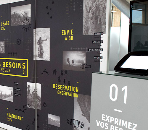 CHALLENGE – Creating a graphic guideline that ensures consistency all over the “Pole Montagne” but also that allows each brand to express themself at their best.